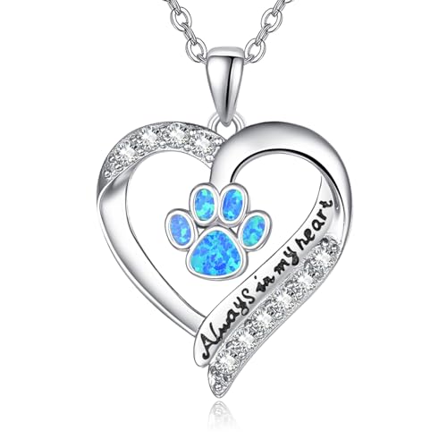 KINGWHYTE hund opal halsband för kvinnor 925 sterlingsilver tass tryck hänge alltid i mitt hjärta halsband blå opal smycken för kvinnor damer mamma dotter, Opal