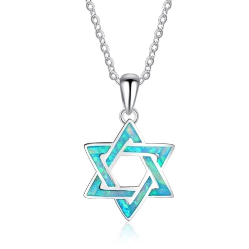 Blue Opal Star Of David Halsband,Crystal Fire Opal Hexagram Choker Birthstone Statement Halsband