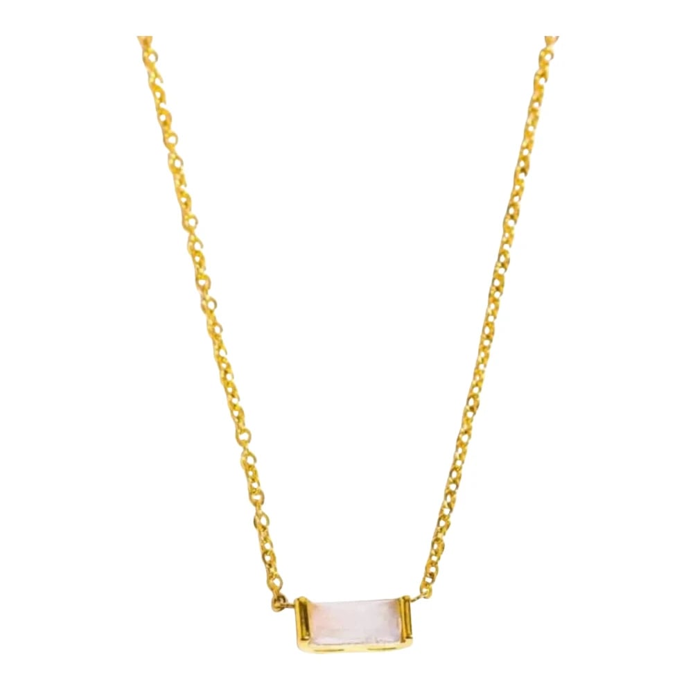 namana Sunburst opal hänge halsband. Läcker borstad finish 14 karat guldpläterat solsmycken halsband med en skapad opal. Nickelfritt och blyfritt halsband med mini Sunburst-hänge., Mässing, Vit (Opal)