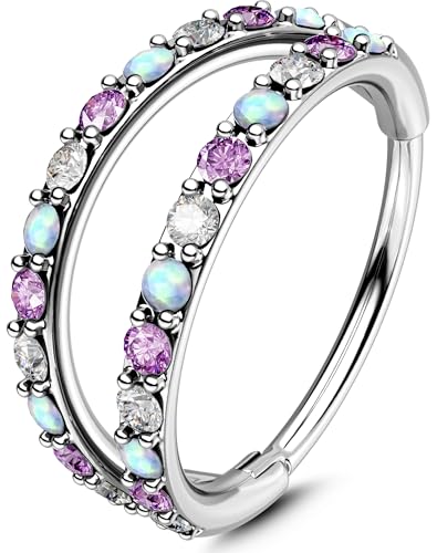 CASSIECA 8–9 st 16 g septum-ringar, opal, daith-örhängen, ring, näsringar i 316L rostfritt stål, CZ, brosk, helix, tragus, örhängen för septum, klicker, piercingsmycken, Opal Rostfritt stål