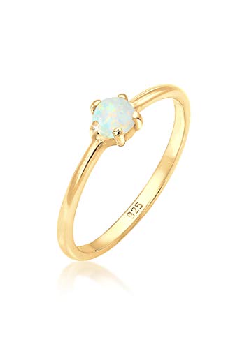 Elli damer äkta smycken ring band basic syntetisk opal geo i 925 sterlingsilver, 56 EU, Opal
