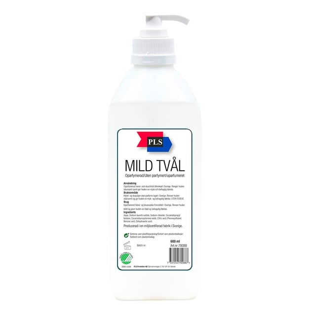 Hand- och Duschtvål PLS Mild Tvål Oparfymerad Med Pump 600ml