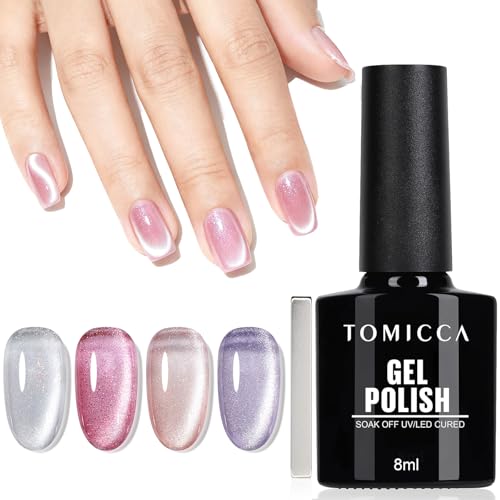 Tomicca Cat Eye UV Nail Polish Set 4 Colors Glitter Pink Gel Polish Nail Polish UV Gel Nails Polish Set for Beginner Nail Studio Home DIY 10ml