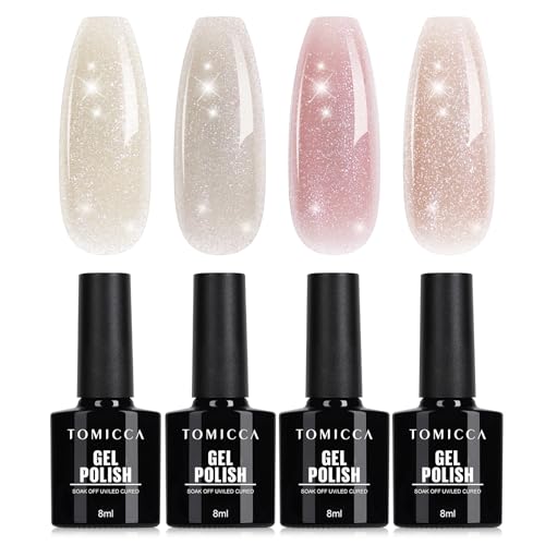TOMICCA UV Nail Polish Pink Glitter 4 Colors Pastel Gel Nail Polish UV/LED Nail Polish Blotted Gift for Nail Studio DIY 8ML