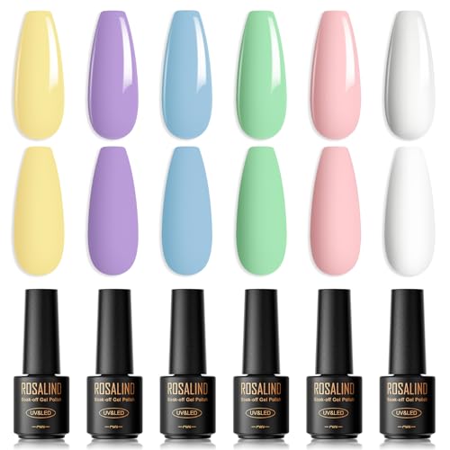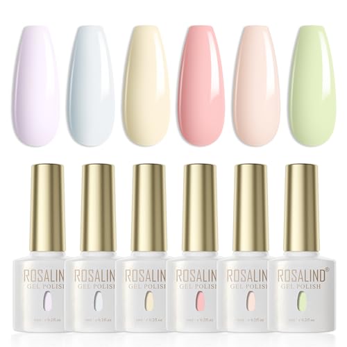 ROSALIND UV-nagellack Pastel, 6 färger Mini Gel Nail Polish Summer Colours Set Macaron Pink Purple Yellow Green Blue Soak Off Nail Polish Macaroon Gel Nails Spring and Summer
