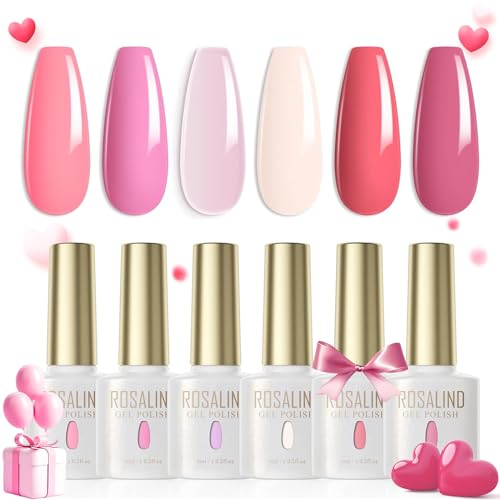 ROSALIND UV-nagellack pastell, 6 färger rosa neonrosa baby hot pink gel nagellack set färggel för gelnaglar Soak Off UV LED gel nagellack Alla hjärtans dag för UV-lampa pastell vår sommar