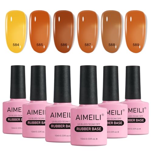 AIMEILI Rubber Base Gel Set, UV LED Gel-lack Nagellack, Sheer Pink Nude Color Gel Polish Set, Soak Off Nail Strengthener Nail Rhinestones Glue Gel Long Lasting 6 st X 8 ml - Kit 45