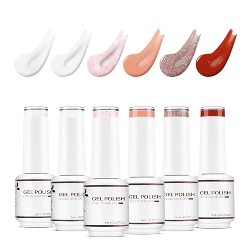 Modelones Gellack 6 Färger Vit Beige Brun UV/LED Gel Nagellack, Gel Nail Polish för Nagelkonst Nagel Kit Nagelstudio