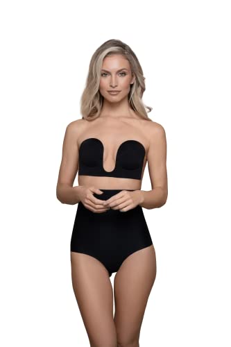 Bye U-stil sömlös behå, självhäftande bh, utan remmar och öppen rygg, push-up effekt, beige och svart, kupor: A-E