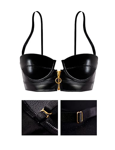 Kvinnors Faux Leather Balcony BH med öppen dragkedja fram, Svart BH, 70B