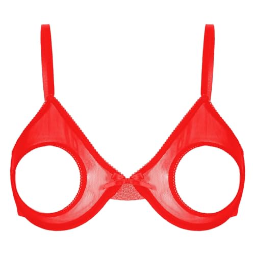 Sexiga Underkläder Set Öppen Nipple Bh Tops,Röd,L