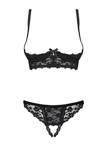 Abierta Fina - öppen spets-bh set (svart) - XL