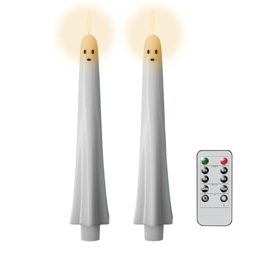 Dgayaeic flamlösa flimrande spöke avsmalnande, realistisk flimrande effekt, 2 x 24 cm, äkta vax vita spöklika LED set, öppen spis skräck halloween högtidsdekor, batteridriven, för