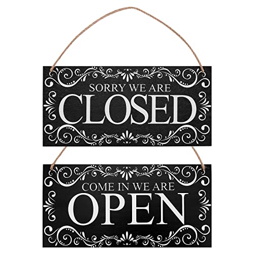 SUPERDANT Öppen och stängd kommersiell skylt i naturligt trä in, vi är öppna och ledsna, vi är stängda vändbara hängande skyltar för butik, kaffe, bar 30 x 15 cm