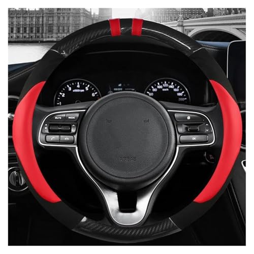 Hjulskydd bil Carbon Fiber Leather Wheel Cover för Kia K5 För Optima 2016-2018 För Sportage KX5 2016-2019 För Niro 2017-2019 Rattlindning(Röd)