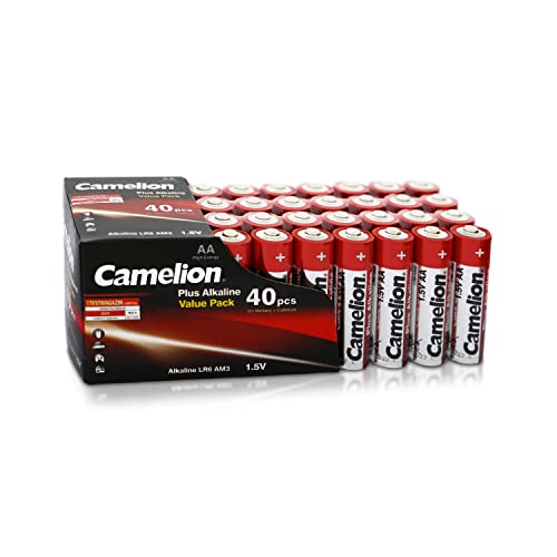 Camelion 11104006 – batterier plus alkalisk AA/LR6, 40 stycken, kapacitet 2 700 mAh, kraftfulla engångsbatterier för elektroniska enheter för optimal strömförsörjning