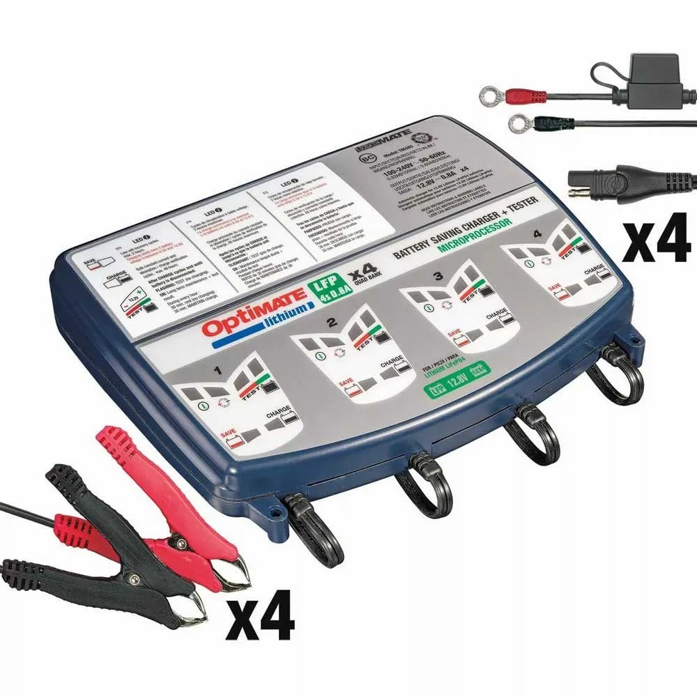 OptiMate TecMate litium, TM484, 4s 0.8A Quad Bank, 8-stegs kapslad, batteriladdning 2 x 12,8 V 0,8 A ladd- och underhållsapparat