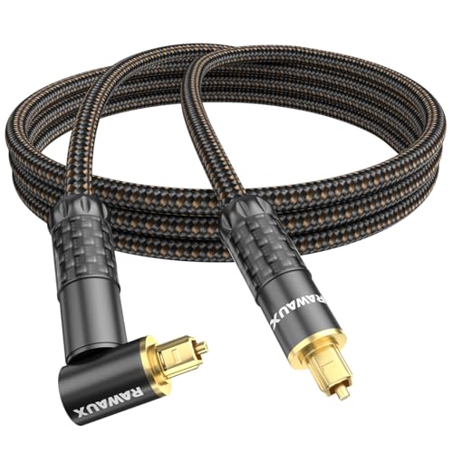 RAWAUX 3 m optisk ljudkabel, 90 graders digital optisk kabel, Toslink S/PDIF högervinklad 24K guldpläterad för TV, soundbar, förstärkare och spelkonsoler (1 x 90° - svart)