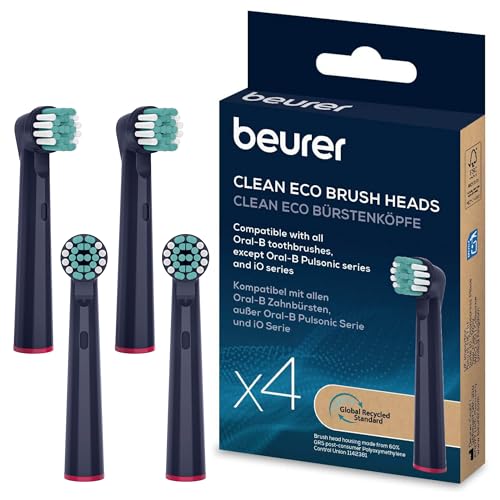 Beurer TB Clean Eco borsthuvuden för elektrisk tandborste, 4 borsthuvuden kompatibla med Oral-B tandborstar, borst av 100% förnybara råvaror, effektiv tandrengöring, medelhårdhet