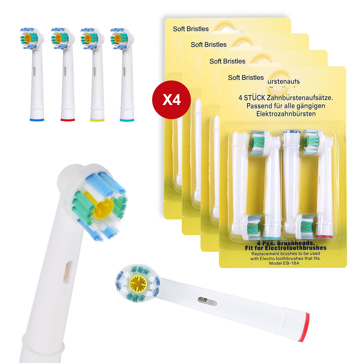 QLEBAO Tandborsthuvuden kompatibla med Braun Oral B elektriska tandborstar, vita ersättningsborsthuvuden för Cross Clean, tandtråd, 3D-ren, precisionshuvud, 16 st