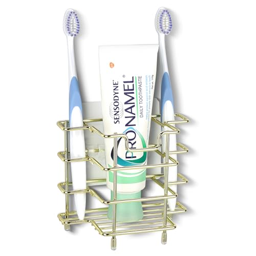 Linkidea Tandborsthållare för väggmontering eller bänkskiva för dusch, tandkrämställ i rostfritt stål, 3 fack, kompatibel med Colgate Extra Clean, Oral-B CrossAction (guld)