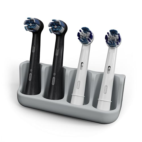 Qikfresh - Hållare för 4 borsthuvuden - Kompatibel med Oral-B, iO, Philips Sonicare, Waterpik, Fairywill - Livsmedelsklassad silikon (Grå)
