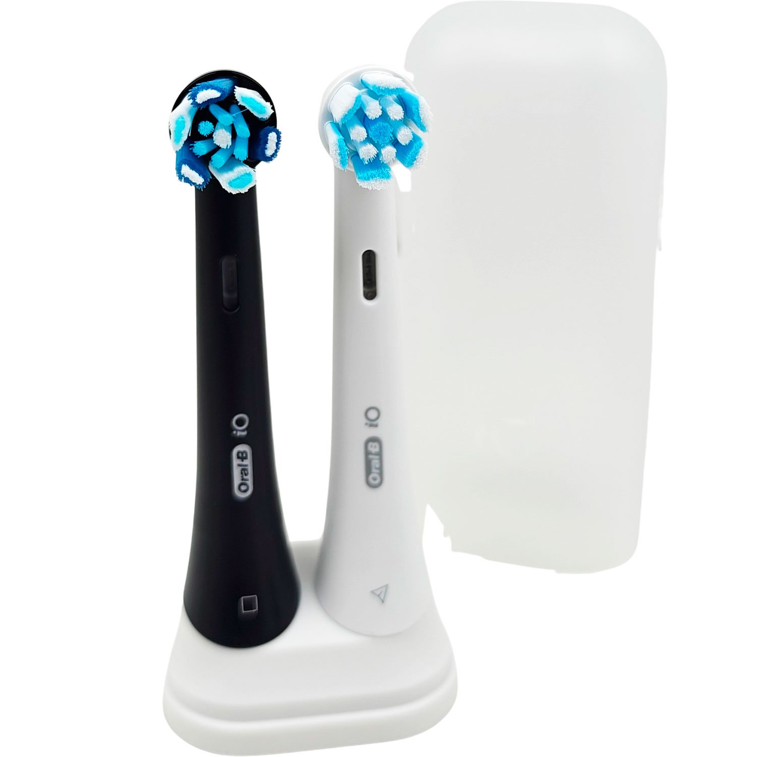 Qikfresh - Hållare för 2 borsthuvuden och eltandborstar - Kompatibel med Oral-B, iO, Philips Sonicare, Waterpik, Fairywill - Livsmedelsklassad silikon (Svart)