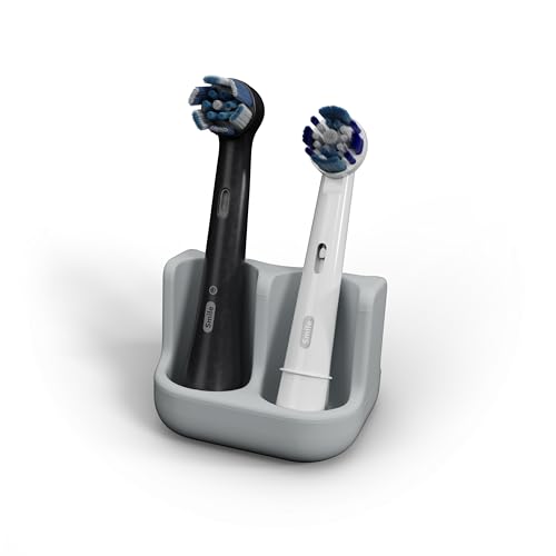 Qikfresh - Hållare för 2 borsthuvuden och eltandborstar - Kompatibel med Oral-B, iO, Philips Sonicare, Waterpik, Fairywill - Livsmedelsklassad silikon (Grå)
