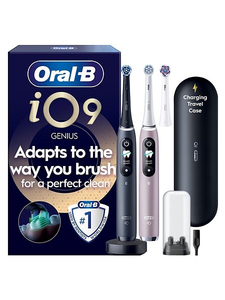 Oral-B iO9 Eltandborste, Duo-pack, 3 tandborsthuvuden, resefodral med laddare