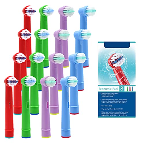 FFYan 16 st tandborsthuvuden för barn för Oral B, ersättningsborsthuvuden för barn, brun, elektrisk uppladdningsbar tandborste med paket