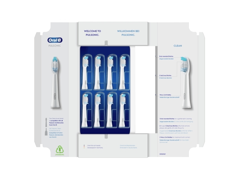 Oral-B Pulsonic Clean Tandborste 81748491 - 8 St - Vit - 3 Månader - Tyskland - Oral-B - Pulsonic Sonic