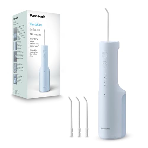 Panasonic Series 300 Ultrasonic Dental Hydropulser EW-DJ27-A303, tandstråle, oral irrigator, 200 ml, IPX7, 4 standardändar, 5 tryckinställningar, resetillbehör, blå