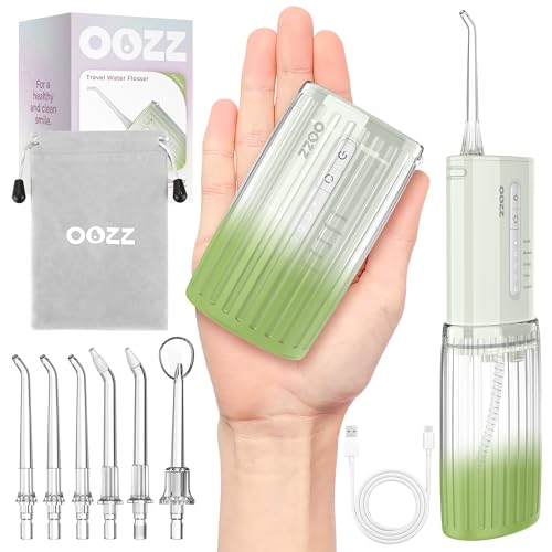 OOZZ Resevattenflosser, sladdlös oral irrigator för ficka, 5 trycklägen, 6 jet-spetsar, USB-uppladdningsbar kompakt design, bärbar oral sköljare för tänder, OZ-7211