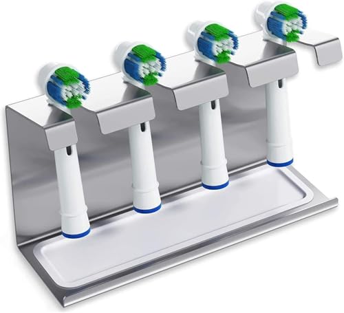 Vinstfull tandborsthållare i rostfritt stål för Oral-B, iO, Philips Sonicare, etc. | Borstborsthållare med uppsamlingsskål | borsthuvudhållare för 4 elektriska tandborsthuvuden