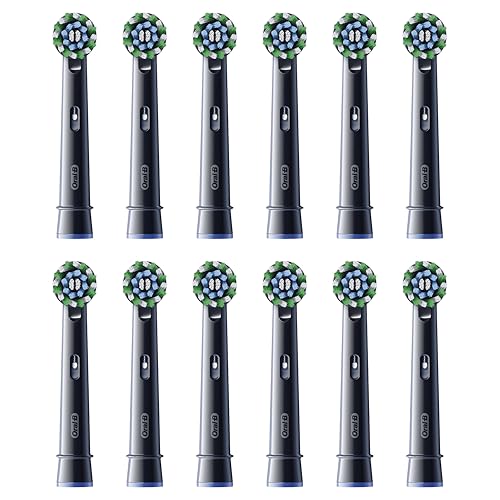Oral-B CrossAction borsthuvuden för elektrisk tandborste, 12 stycken, munrengöring med CleanMaximiser-borst, tandborstfäste för Oral-B-tandborstar, brevlådeförpackning, svart