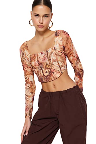 Trendyol Dam orange ticker stickad blus blus, extra liten