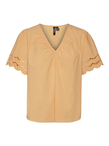 VERO MODA Dam VMSIV SS V-hals topp WVN BTQ blus, mock orange, M, Mock orange, M