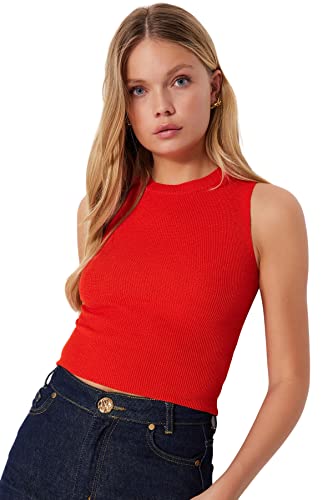 Trendyol Dam vanlig basic stickad blus med rund hals, Orange, S