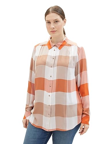 TOM TAILOR Dam plusstorlek blus, 32422 – rouge orange check vävd, 44 SE/L