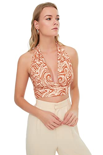 Trendyol Dam anpassad basic halterneck stickad blus, Orange, XL