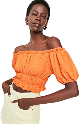 Trendyol Dam anpassad axellös Carmen krage stickad blus, Orange, M