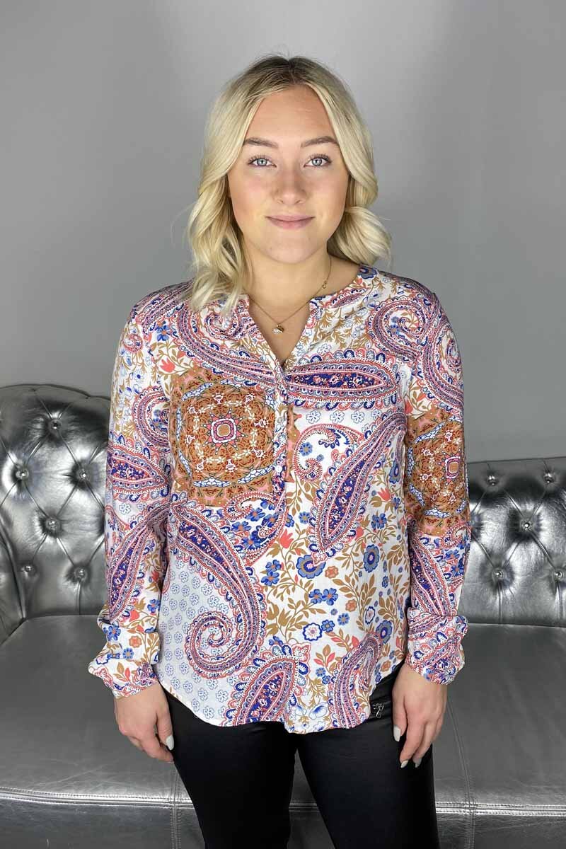 Blue Seven Dam heltryck, Henley-blus, 524 blå orange, 42 SE