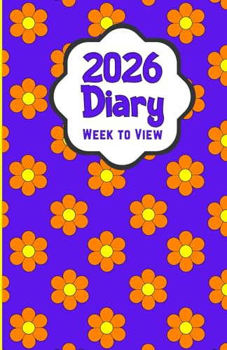 2026 Week to View Diary: Striking Orange and Purple Flower Pattern Design. 5.5"x8.5" Size. Ideal for Personal, Business, or Student Use