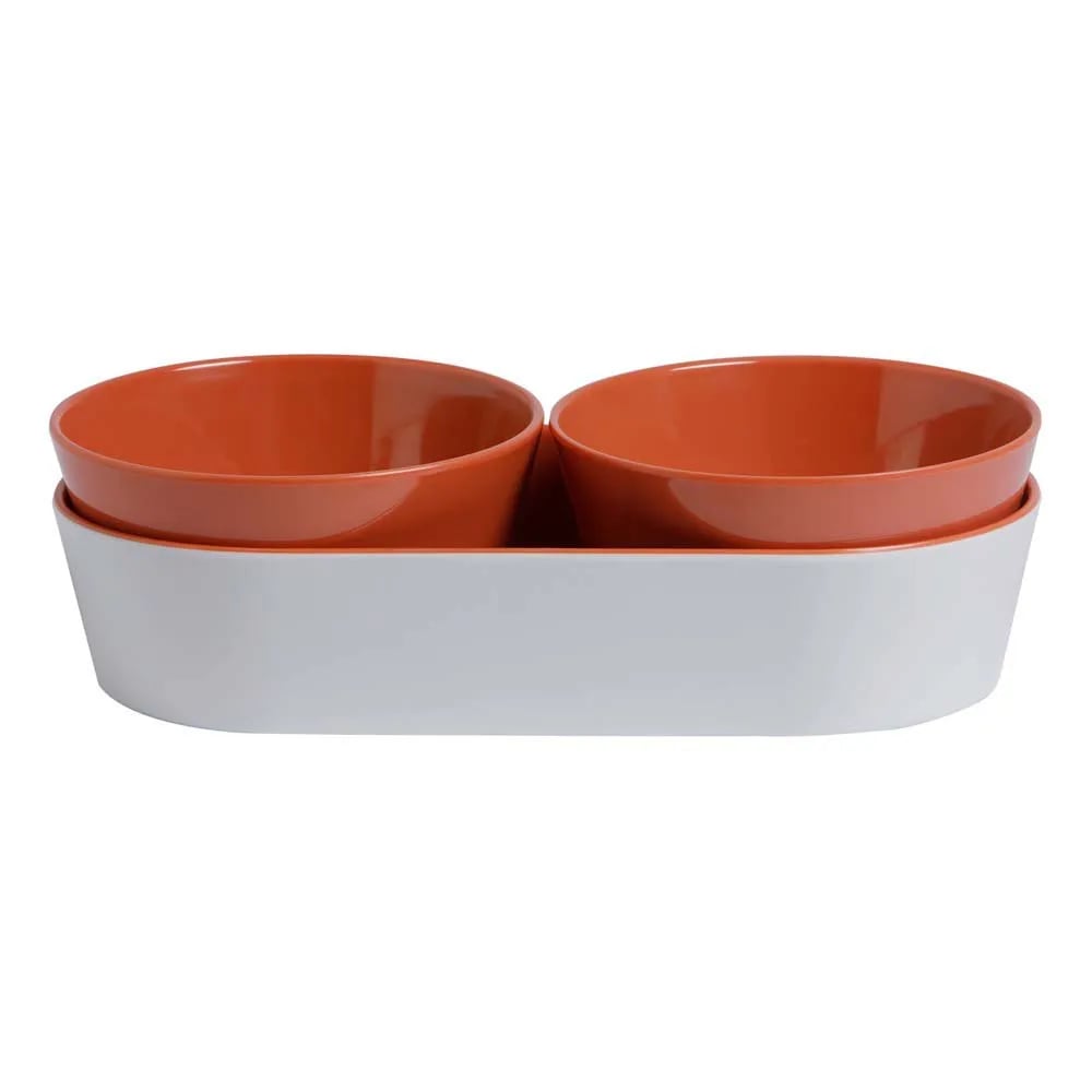 Snackskålar i melamin med bricka Marine Business Coral, röd, 3 delar