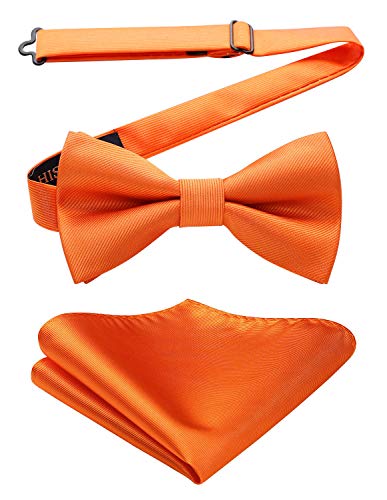 HISDERN Förknutna flugor för män, enfärgad, klassisk smokingfluga, justerbar, två lager, fluga och näsduk, set, Orange, en storlek