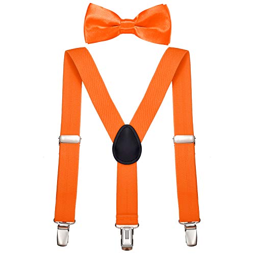 DonDon pojke hängslen fluga set orange elastiskt och längdjusterbart för barn från 1-8 år