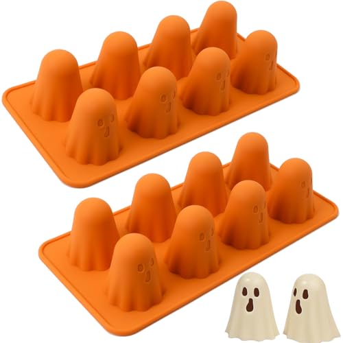 Kuatataty 2 stycken halloween silikonform choklad spöke 3D chokladform silikon isbitsformar non-stick spöken silikonformar bakning för gelé, godis, pudding, choklad, isbitar