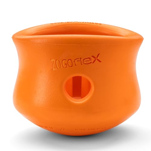 West Paw Zogoflex Toppl Godisdispensering för hundar, leksak, pussel, interaktiv tuggleksak, hundleksak för måttliga tuggare, hämta, fånga, rymmer torrfoder, godis, L, mandarin