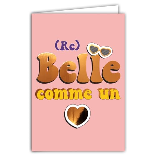 69-9037 Vackert och återvackert som ett hjärta-kort för vacker flicka kvinna text bokstäver i glänsande koppar orange + kuvert 12 x 17,5 cm - vit interiör - tryckt skapelse tillverkat i Frankrike