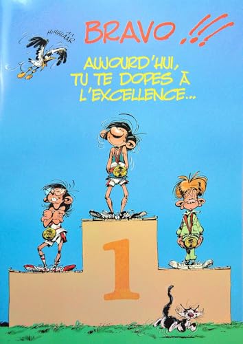 Gaston Lagaffe glmg-5001 jätte presentkort jubileumskort – extra stor karta hjärta lyckönskan Maxi stor A3 med kuvert illustrerar Bravo Champion Sport Medaille snitt framgång excellence